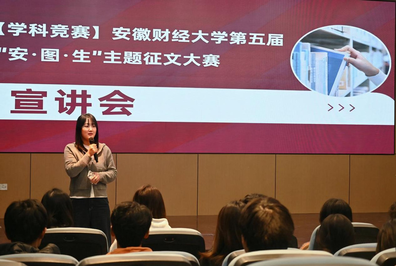 为激发大学生对诗歌创作的热情,彰显青春才情与思想深度,以诗为笔,书写与图书馆的独家记忆、定格阅读中的心动瞬间,由图信中心主办、赛事组委会承办的第五届“安·图·生”主题征文大赛宣讲会于2025年11月19日15:30至16:30在东校区图书馆一楼学术报告厅举行,约一百余名同学参与了此次宣讲会。